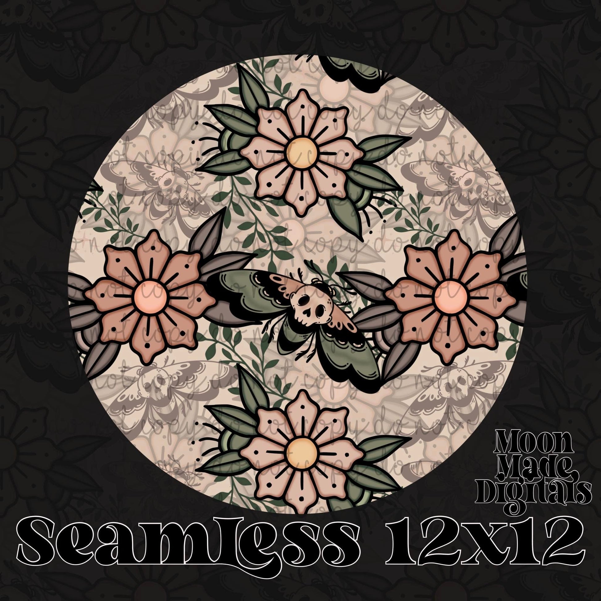 Tattoo Boho Moth Floral Tan Seamless